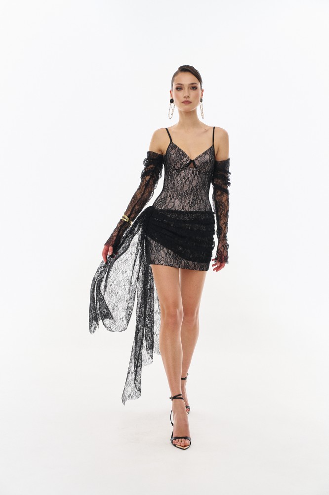 Платье кружевное в черном цвете.
