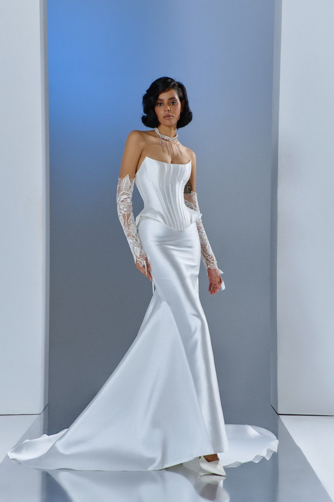Корсет и юбка отшивается в молочном цвете.