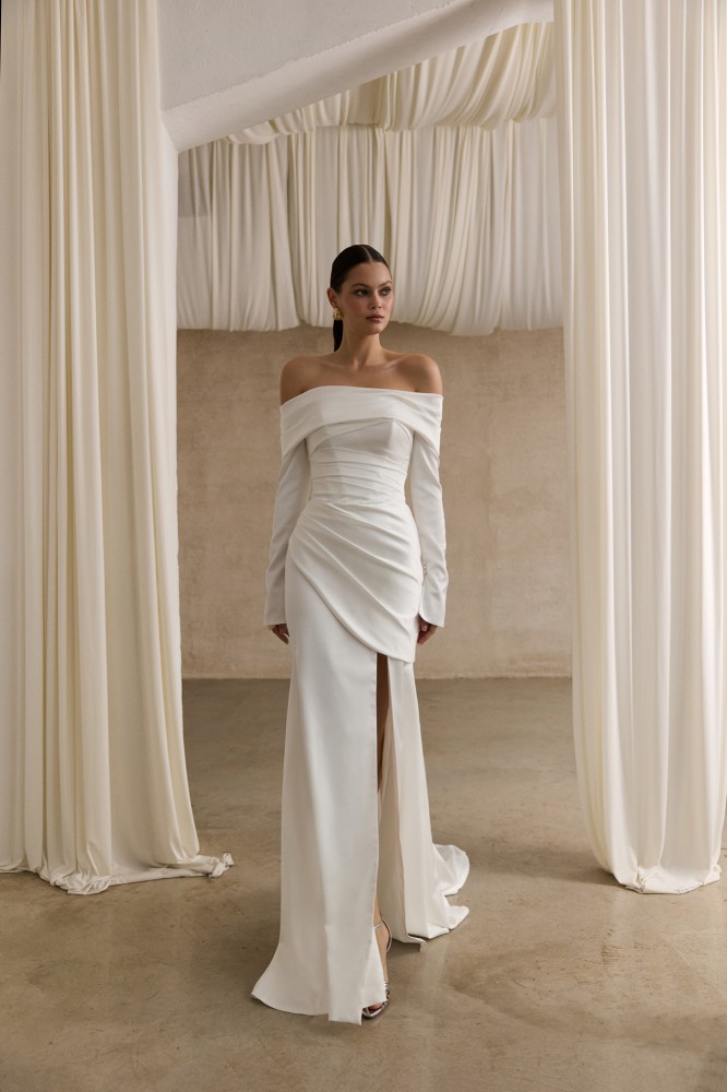 Свадебное платье, силуэт рыбка, ткань атлас.