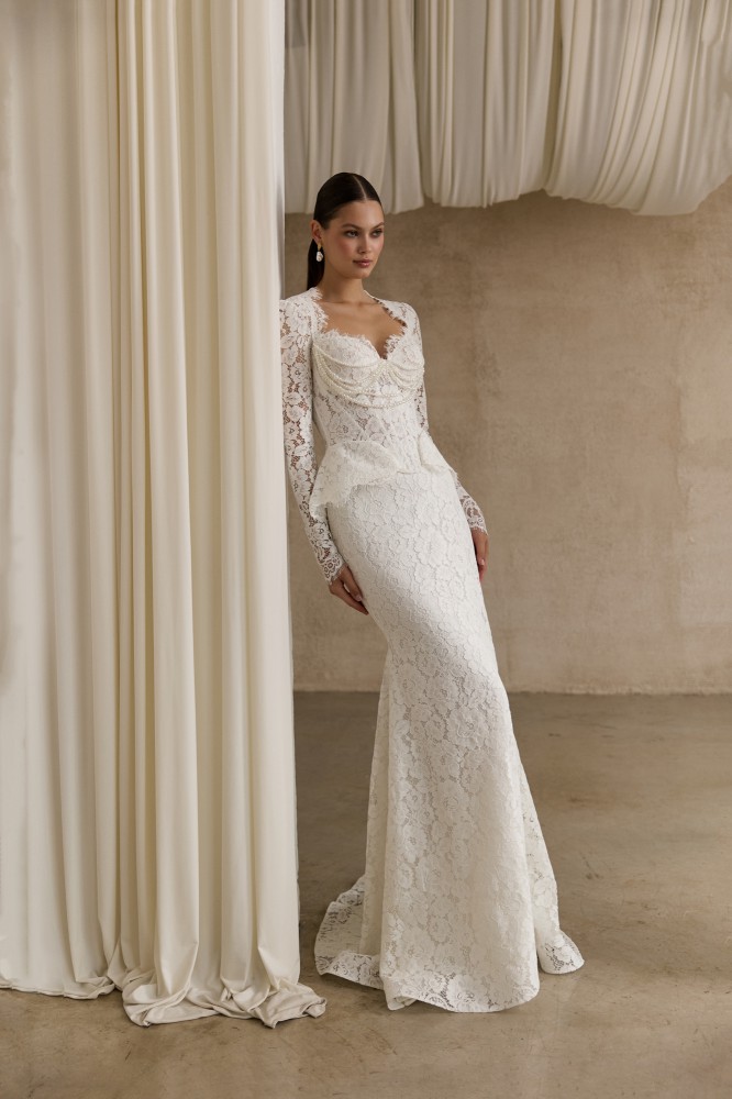 Свадебное платье, силуэт рыбка, ткань кружево.