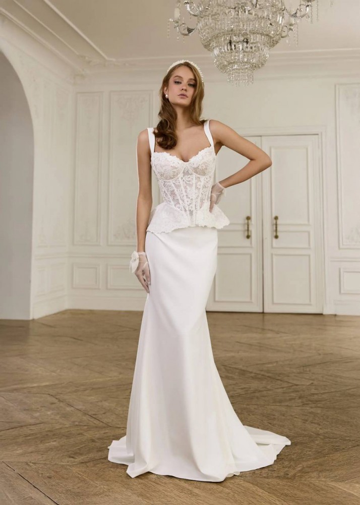 Свадебный комплект "Дживс" состоит из кружевного корсета и юбки силуэта рыбка из гладкой ткани.